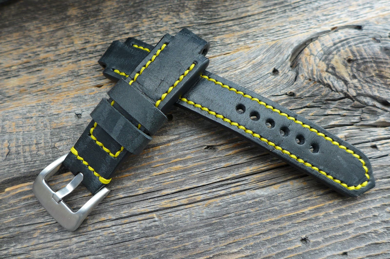 #848 black stripes Solid-Line (Sonderanfertigung, Modell open stitch, Garn signalgelb, Kantenfarbe schwarz)