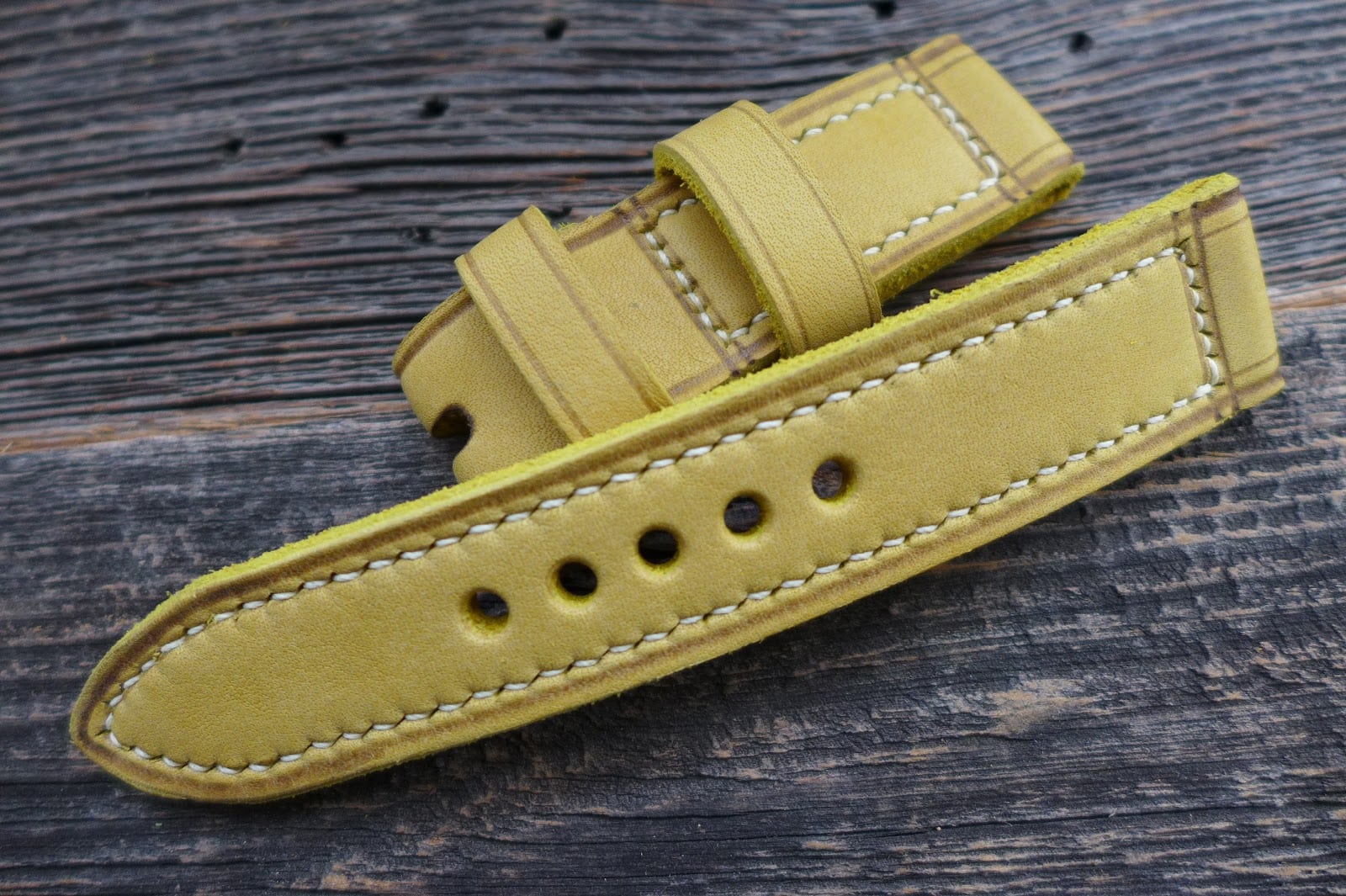 #852 Horween yellow calico Classic-Panerai Line (Modell closed stitch, Garn cream)