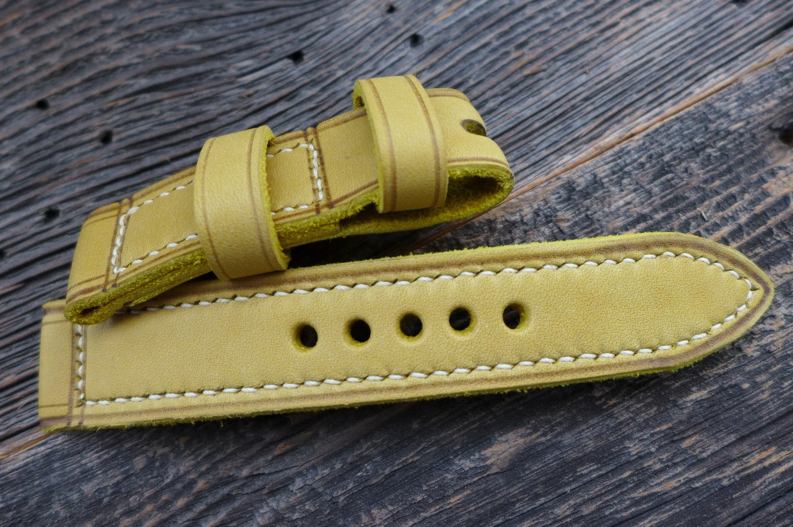 #853 Horween yellow calico Classic-Panerai Line (Modell closed stitch, Garn cream)