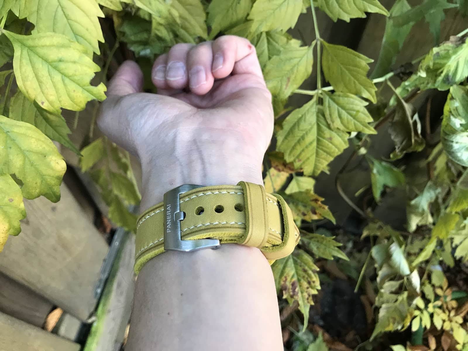 #854 Horween yellow calico Classic-Panerai Line (Modell closed stitch, Garn cream)
