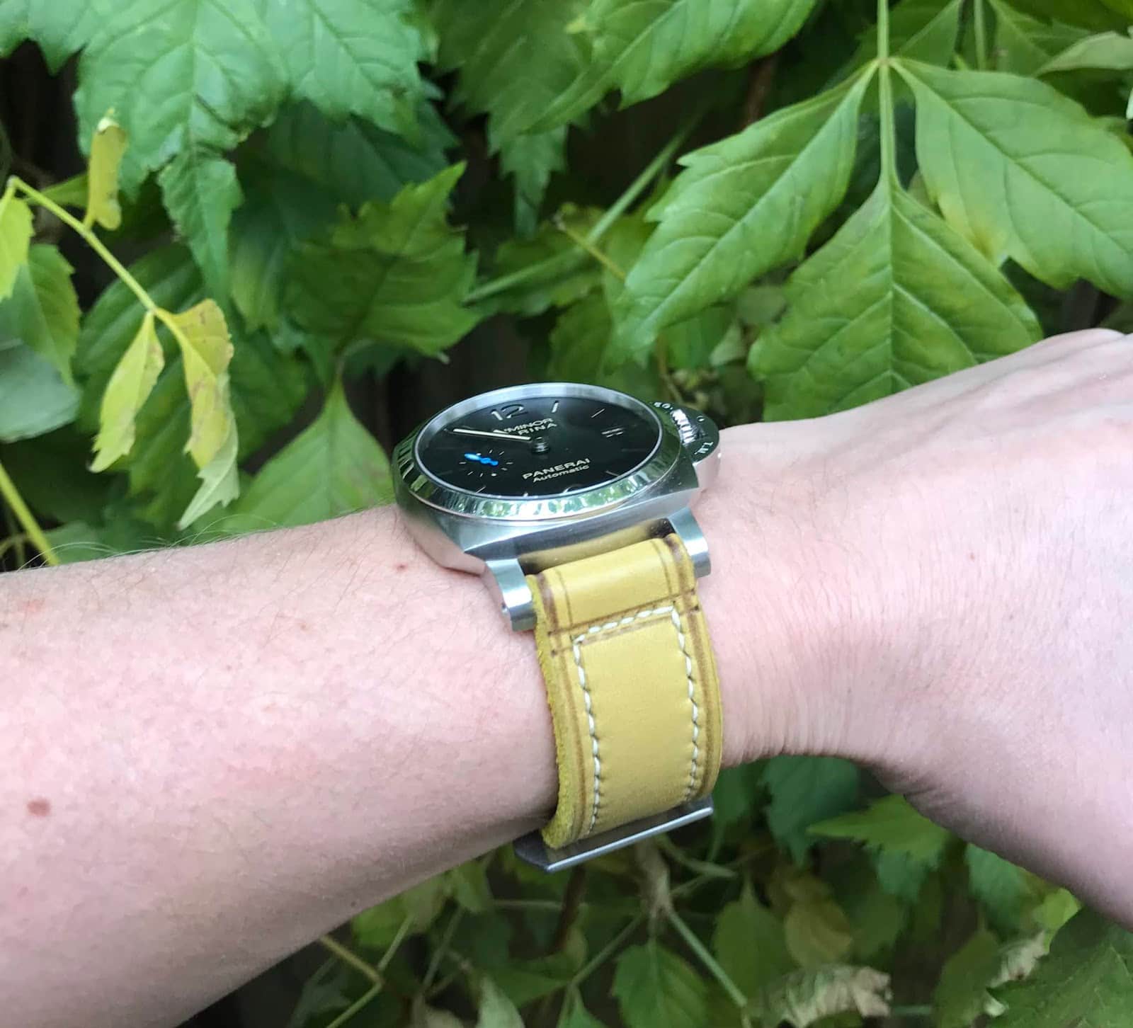 #855 Horween yellow calico Classic-Panerai Line (Modell closed stitch, Garn cream)