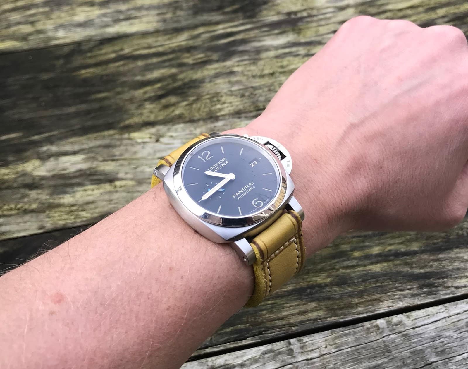 #856 Horween yellow calico Classic-Panerai Line (Modell closed stitch, Garn cream)