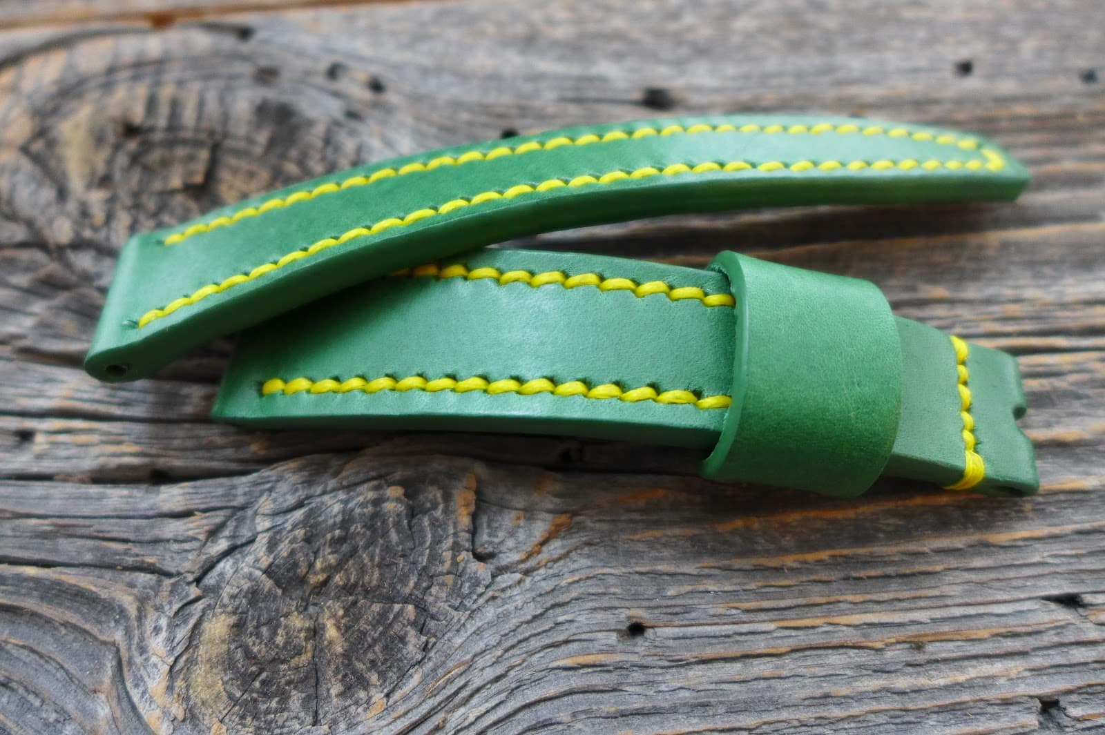 #922 maigrün Solid-Line (Modell open stitch, Garn signalgelb, Kantenfarbe grün)
