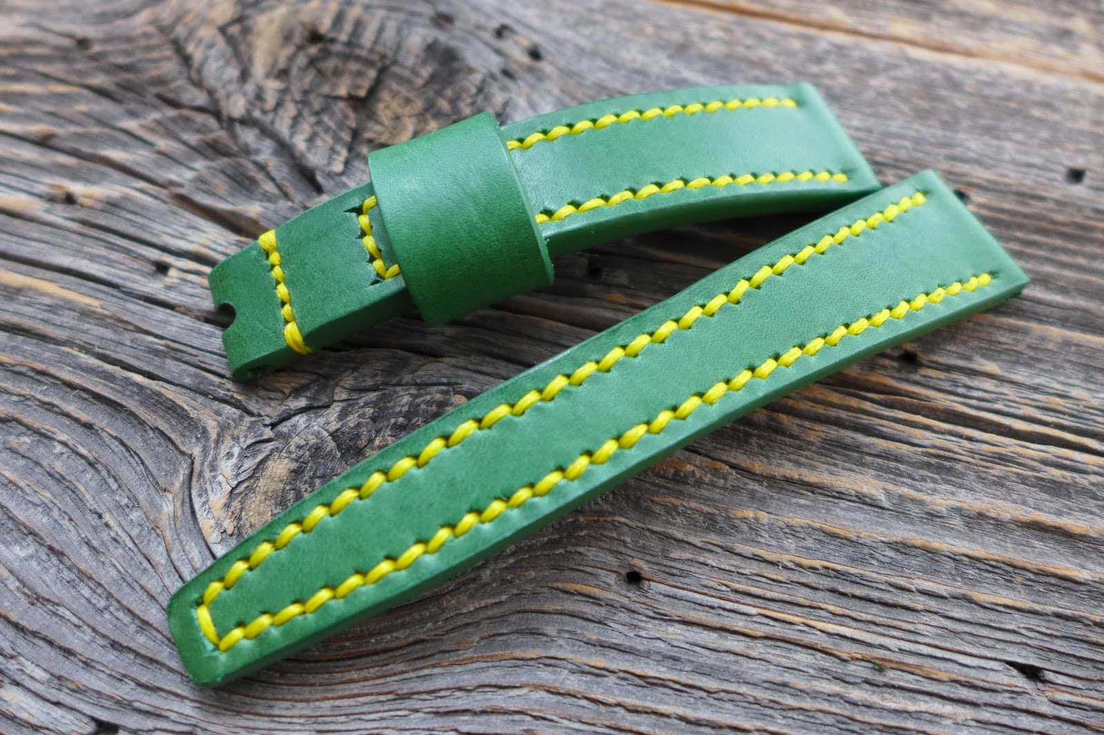 #923 maigrün Solid-Line (Modell open stitch, Garn signalgelb, Kantenfarbe grün)