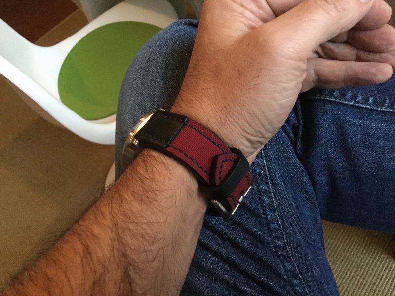 #925 Canvas burgund rot (Leder matt soft schwarz) Canvas Line (Modell Bauart flap style, Garn schwarz)