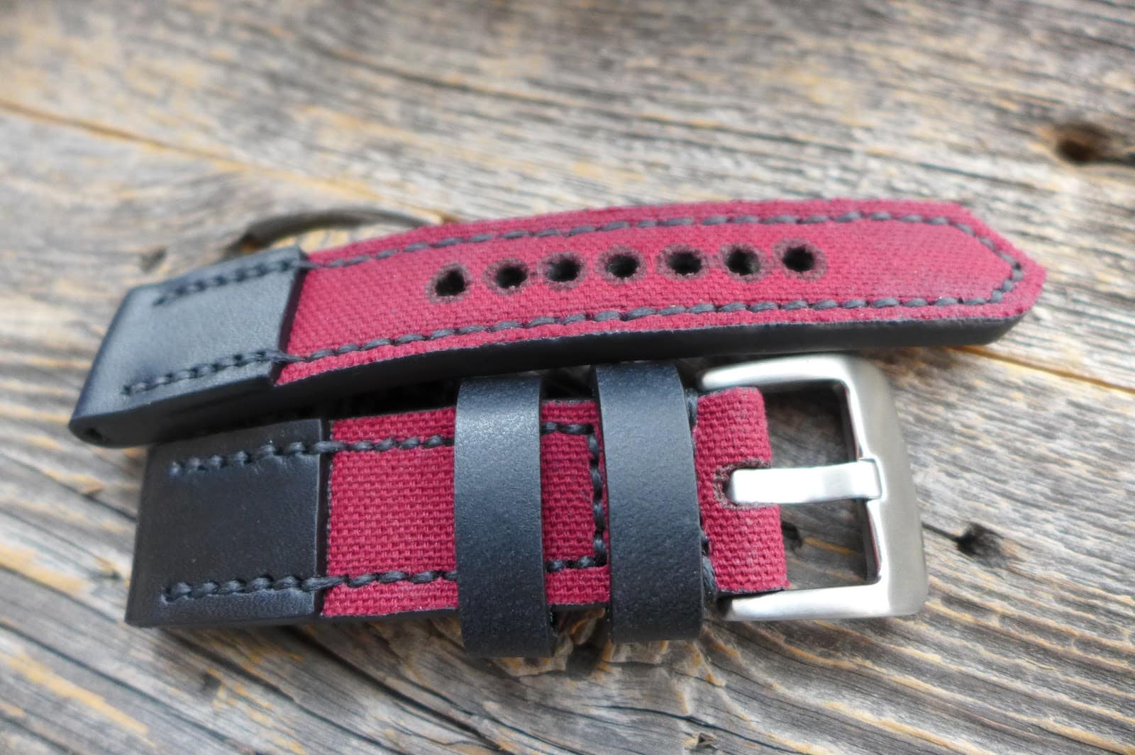 #926 Canvas burgund rot (Leder matt soft schwarz) Canvas Line (Modell Bauart flap style, Garn schwarz)