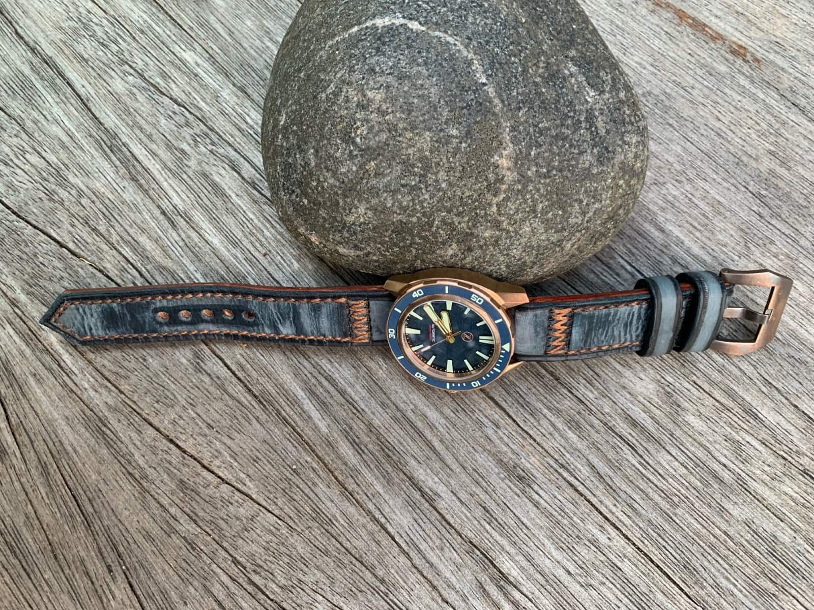 #964 schieferblau burned&aged Vintage Line (Modell triangle stitch, Garn kupfer)
