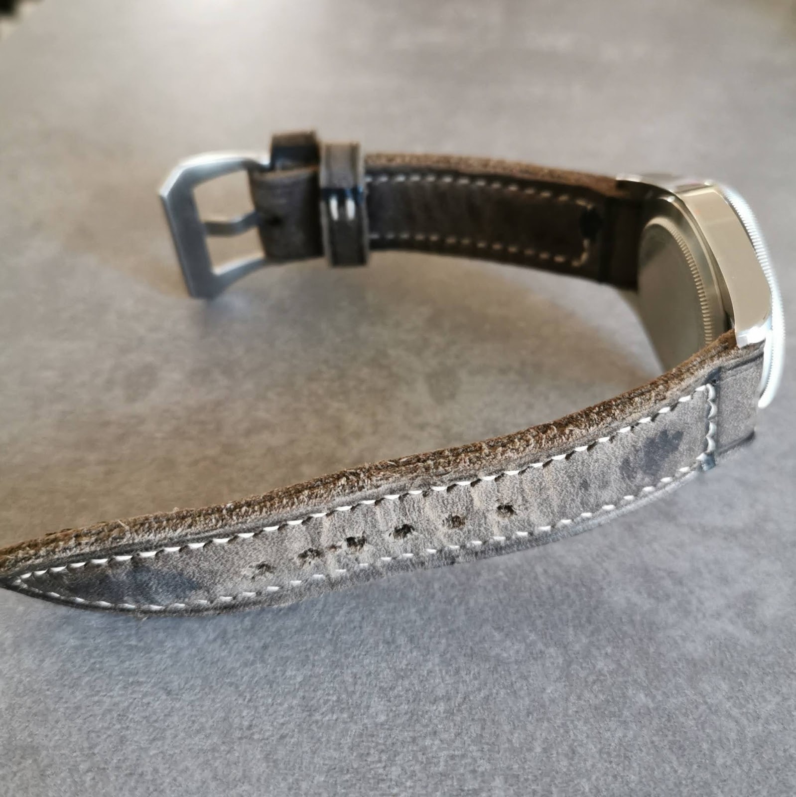 #965 Tasman smoked grey Classic-Panerai Line (Modell closed stitch, Garn cream)