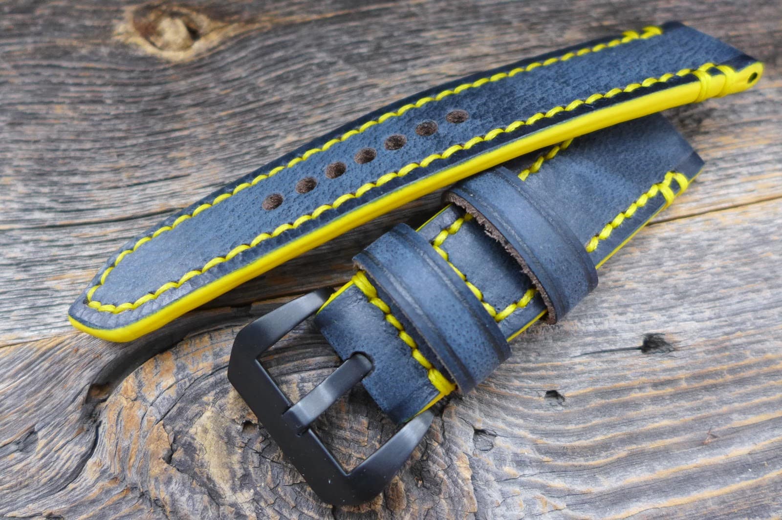 #998 Wasserbüffel dunkelblau Solid-Line (Modell u-turn, Garn signalgelb, Kantenfarbe gelb)