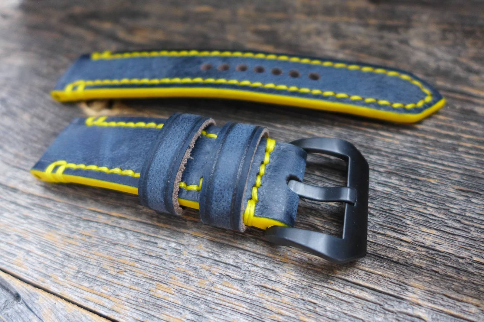 #999 Wasserbüffel dunkelblau Solid-Line (Modell u-turn, Garn signalgelb, Kantenfarbe gelb)